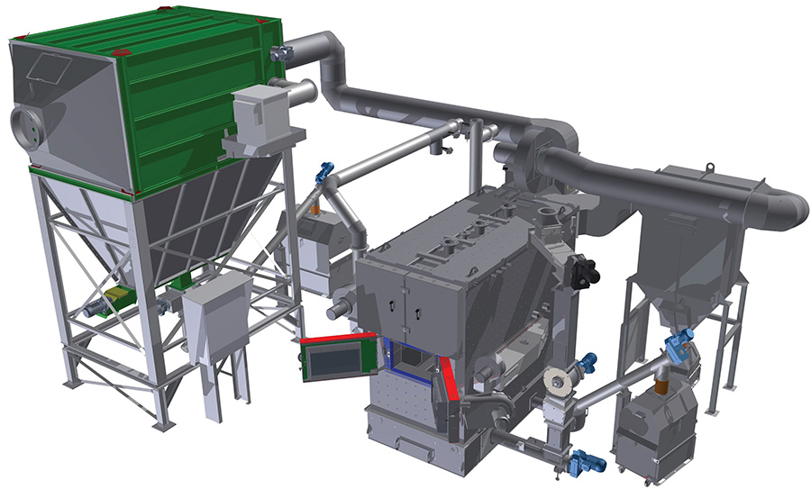 - Dwustopniowy system filtracji spalin zapewnia redukcję emisji pyłu do poziomu < 20 mg/m3.